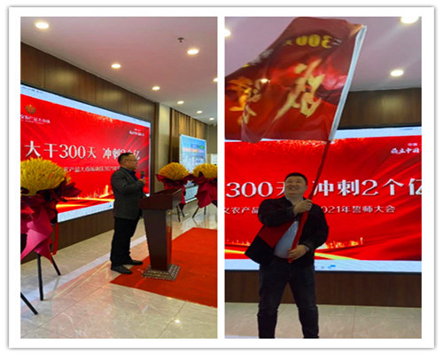 只爭朝夕,不負(fù)韶華,新征程,續(xù)輝煌。2021年3月1日,中鼎鑫農(nóng)·孝義農(nóng)產(chǎn)品大市場各位領(lǐng)導(dǎo)、員工、銷售精英齊聚展示中心,舉行“2021年開工誓師大會”,此次活動主題為“大干300天 沖刺2個億”!