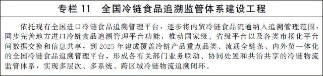 加快建設(shè)全國性冷鏈物流追溯監(jiān)管平臺,完善全鏈條監(jiān)管機制,針對冷鏈物流環(huán)境、主要作業(yè)環(huán)節(jié)、設(shè)施設(shè)備管理等重點,規(guī)范實時監(jiān)測、及時處置、評估反饋等監(jiān)管過程,逐步分類實現(xiàn)全程可視可控、可溯源、可追查。創(chuàng)新監(jiān)管手段,加大現(xiàn)代信息技術(shù)和設(shè)施設(shè)備應(yīng)用力度,強化現(xiàn)場和非現(xiàn)場監(jiān)管方式有機結(jié)合。借鑒新冠肺炎疫情防控期間進口冷鏈食品檢驗檢測檢疫經(jīng)驗做法,優(yōu)化完善工作機制,建立科學、可靠、高效的冷鏈物流檢驗檢測檢疫體系。