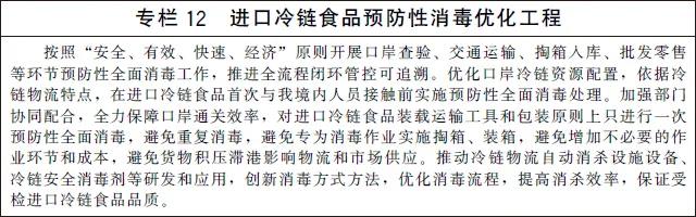 健全檢驗檢測檢疫體系。適應(yīng)不同農(nóng)產(chǎn)品檢驗檢測檢疫要求,完善覆蓋從種養(yǎng)殖、加工到銷售終端全鏈條以及冷鏈物流包裝、運載工具、作業(yè)環(huán)境等全要素的檢驗檢測檢疫體系。加強檢驗檢測檢疫設(shè)施建設(shè)和設(shè)備配置,完善應(yīng)急檢驗檢測檢疫預案,實行閉環(huán)式疫情防控管理,防范非洲豬瘟、新冠肺炎、禽流感等疫情擴散風險,提高重大公共衛(wèi)生事件等應(yīng)急處置能力。